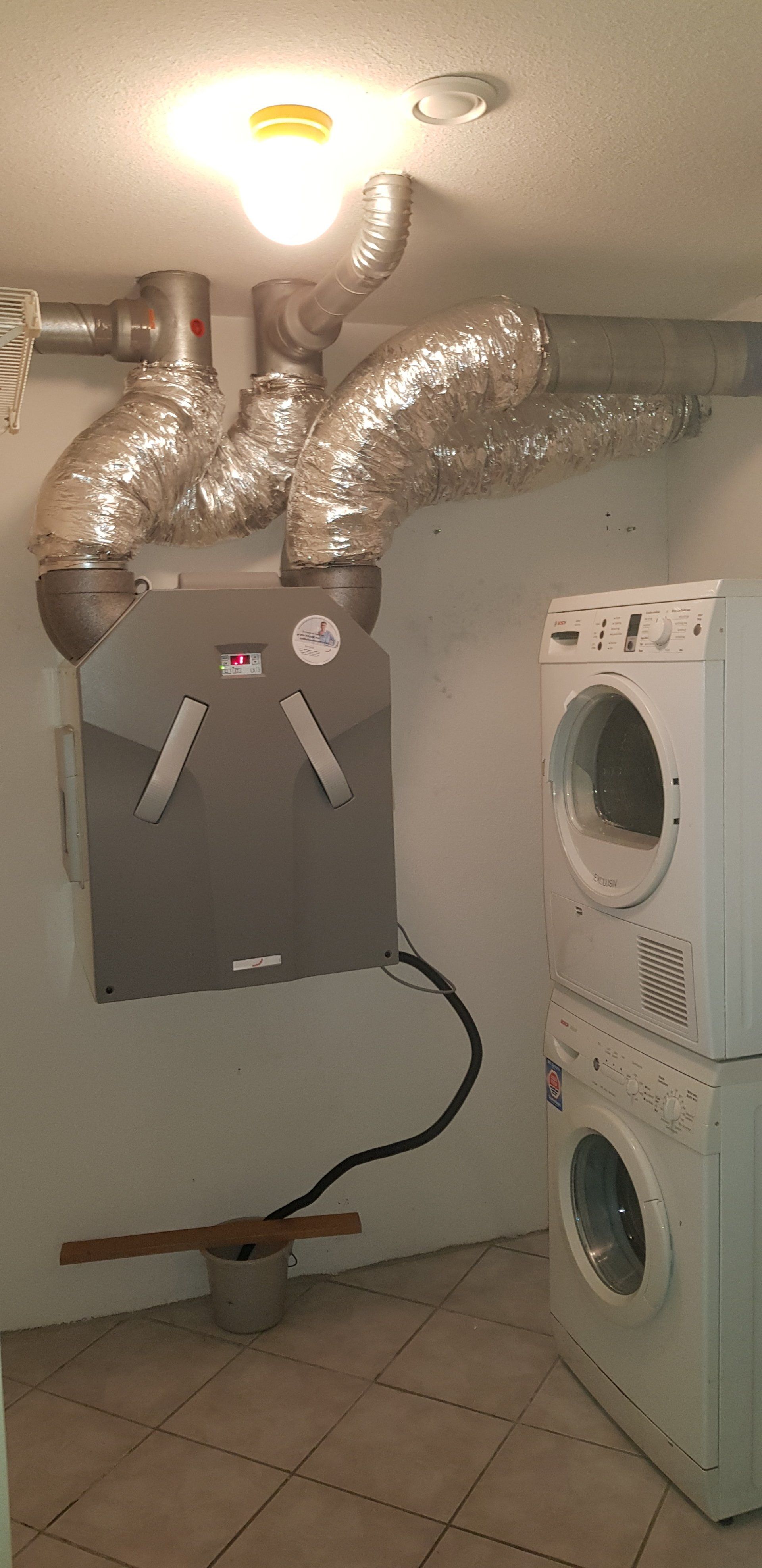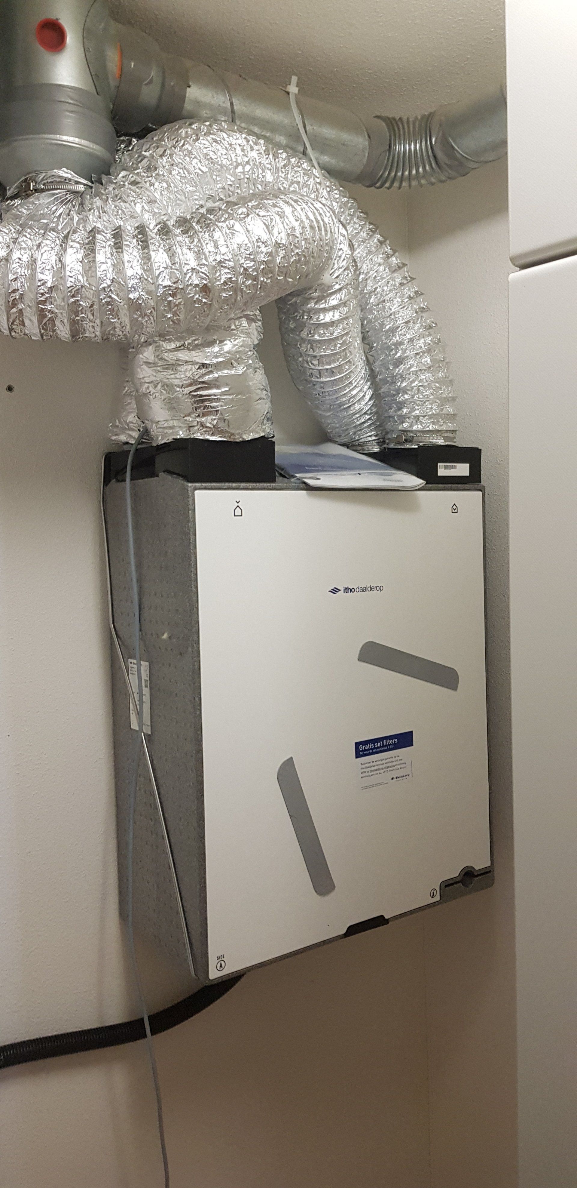 Bij 1 bewoner die een kleinere appartement heeft wilde ook een kleinere WTW unit en daar hebben wij een ITHO HRU 200 opgehangen en aangesloten.